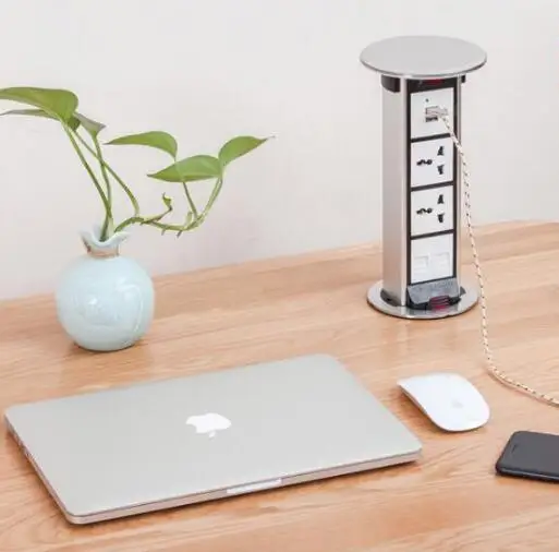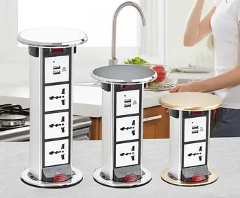 Special Offer Metal Cap Kitchen Worktop,Office Desk Pop Up Pull Up Plug Socket - Stainless Steel Metal EU USA UK Standard Desktop Power Socket Discount 10% Today!