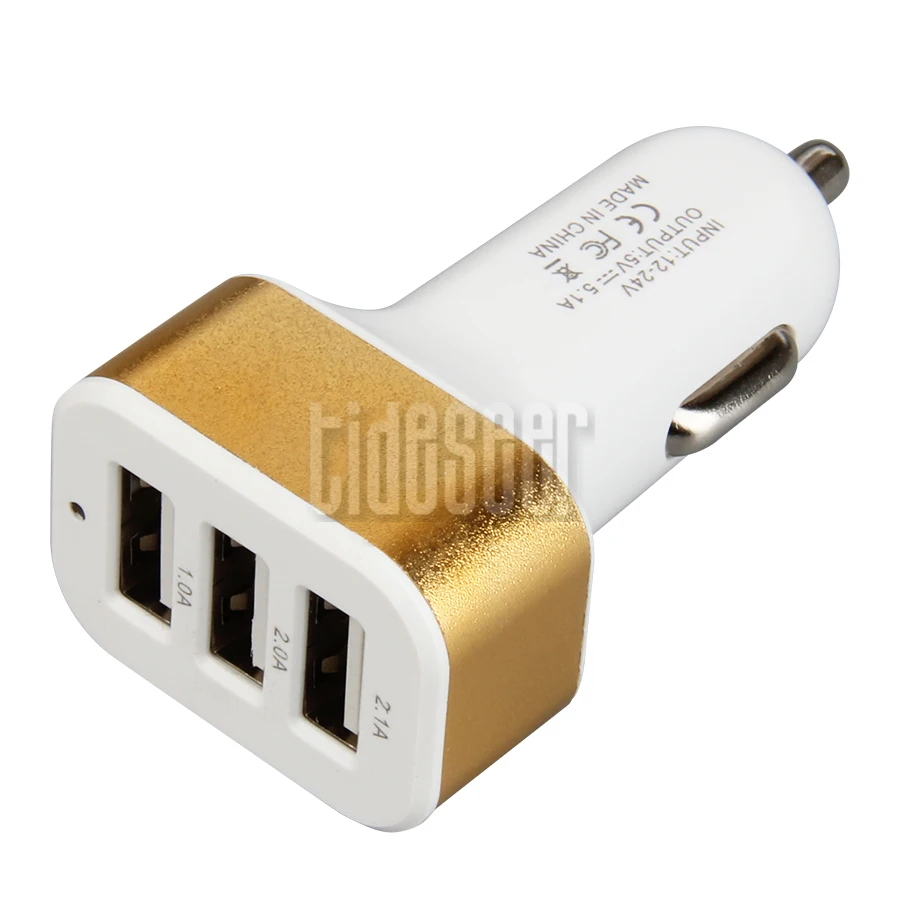 Product Name: USB Car Charger 3 Port Car-charger Adapter Socket Cigarette Lighter 2.1A 1A 1A Universal For Mobile Phone Pad Chargers 2000pcs